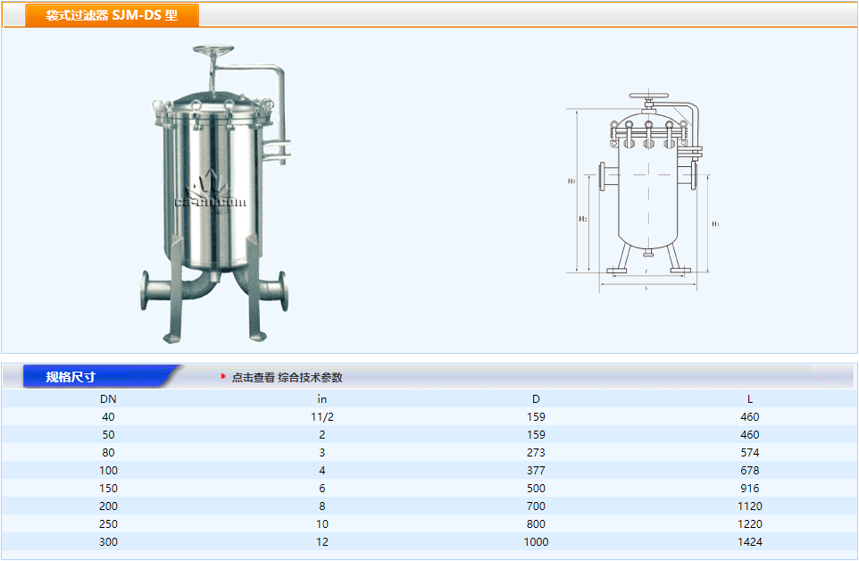 “袋式过滤器”袋式过滤器是一种结构新颖、体积小、操作简便灵活、节能、高效、密闭工作、适用性强的多用途过滤设备。是一种压力式过滤装置,主要有过滤筒体、过滤筒盖和快开机构、不锈钢滤袋加强网等主要部件组成,滤液由过滤机外壳的旁侧入口管流入滤袋,滤袋本身是装置在加强网篮内,液体渗透过所需要细度等级的滤袋即能获得合格的滤液,杂质颗粒被滤袋拦截。该机更换滤袋十分方便,过滤基本无物料消耗。