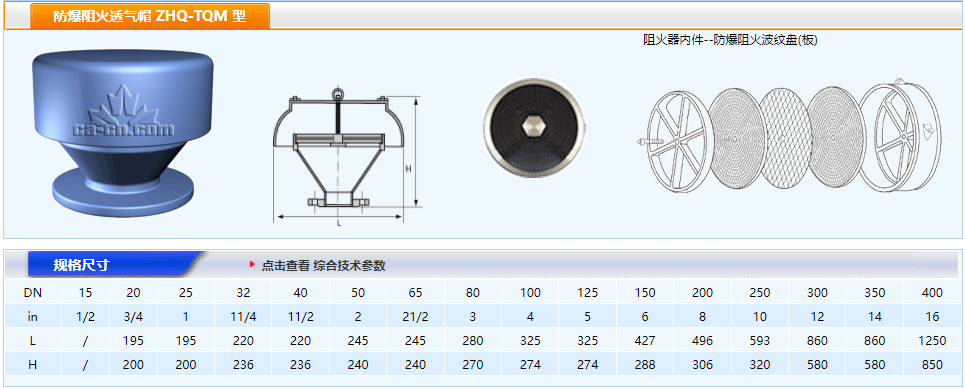 1、要向商家询问阻火透气帽的产品名称、型号及口径大小,从而确定是否带附件以便我们选择适合自身的型号;
